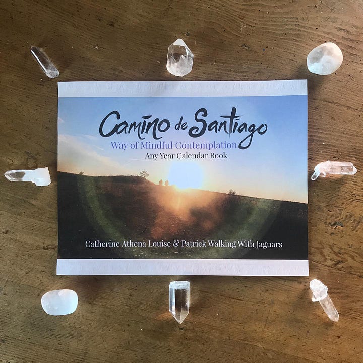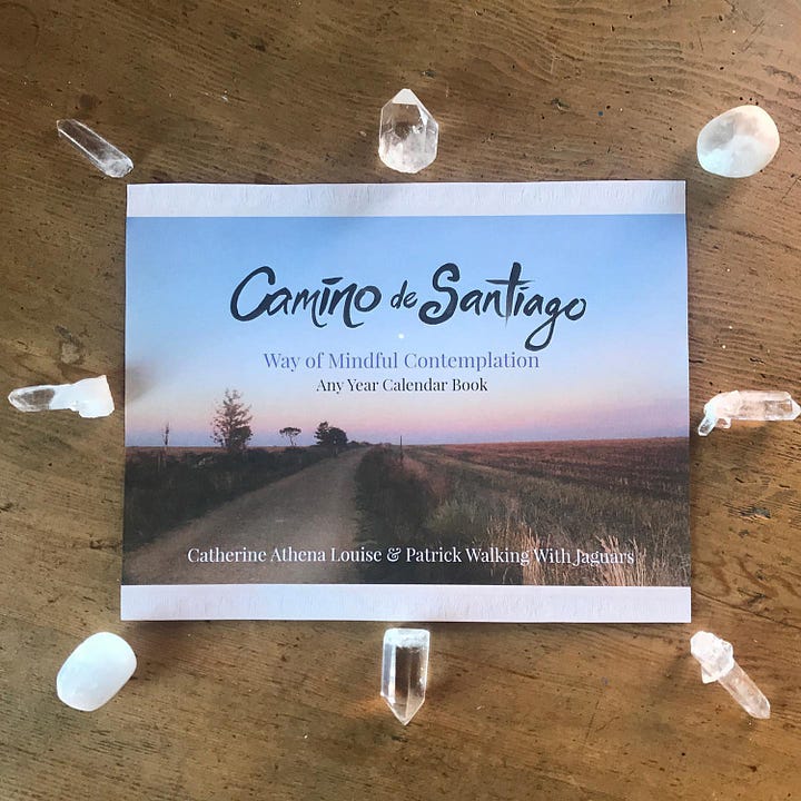 A collaboration between mixed-media artist Catherine Athena and Camino photographer Patrick Walking With Jaguars, bringing together a unique visual experience of the famous pilgrim route Camino De Santiago De Compostela. This 40 page, re-usable Calendar Book can be used any year you wish.